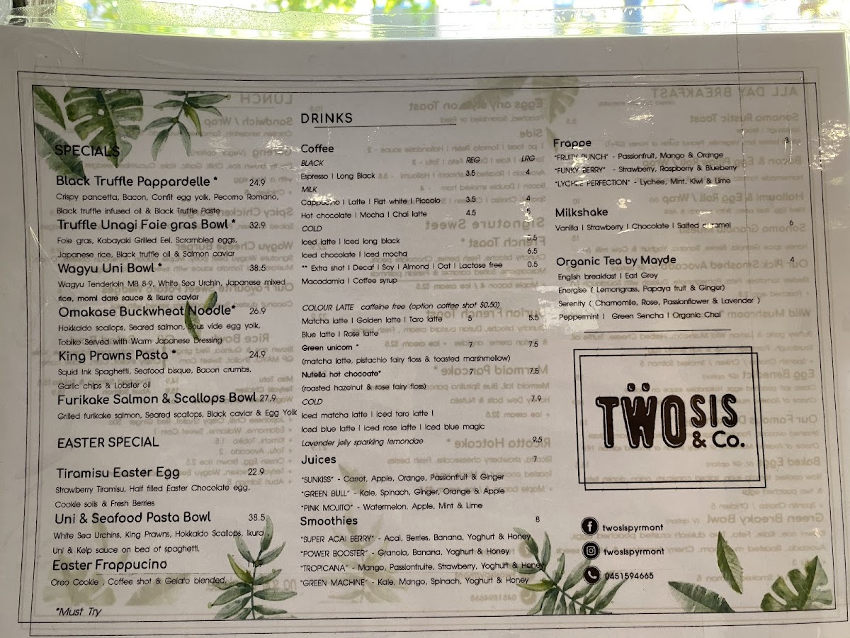 Welcome to two sis & co, a delightful culinary haven located at 306 Harris St, Pyrmont, NSW. This vibrant eatery has quickly captured the hearts of food lovers and Instagram enthusiasts alike, thanks to its stunning range of aesthetically pleasing dishes and welcoming atmosphere.